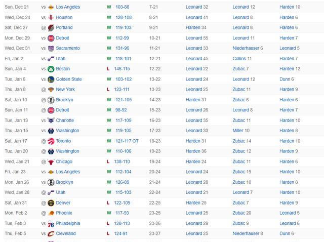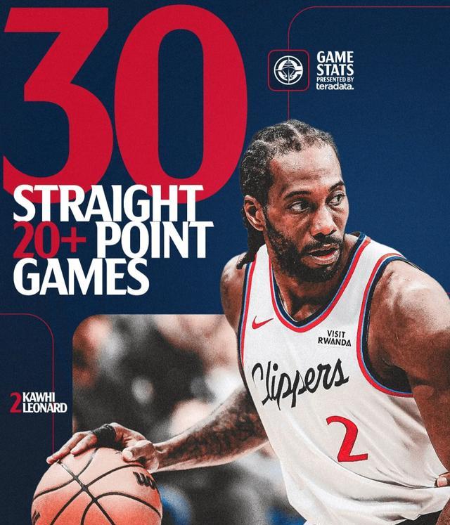 2.小卡连续30场20+在快船队史超过格里芬;