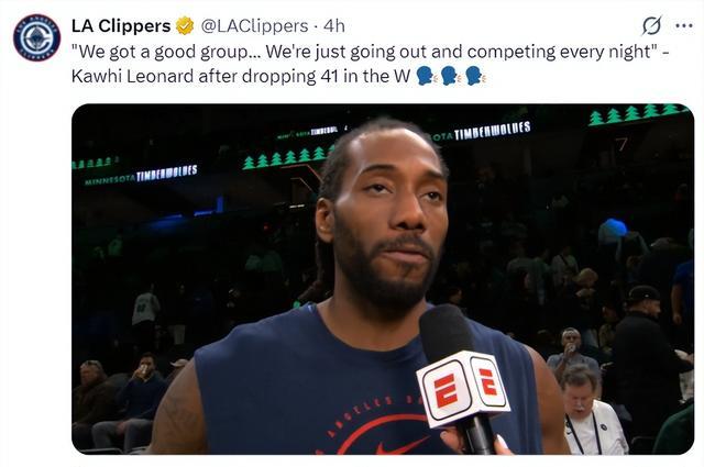 赛后伦纳德接受采访,他说道:我们是一支出色的球队,我们每一晚都为了胜利全力以赴去拼搏竞争,我们有一个目标。
