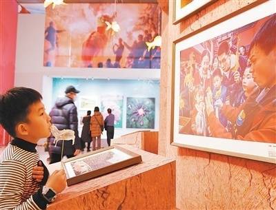 在中国非物质文化遗产馆举行的展览现场,小朋友被一幅摄影作品吸引。 新华社记者 金立旺