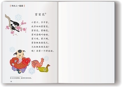 统编语文教材(人教社出版)一年级上册《剪窗花》课文内页。 人民教育出版社供图