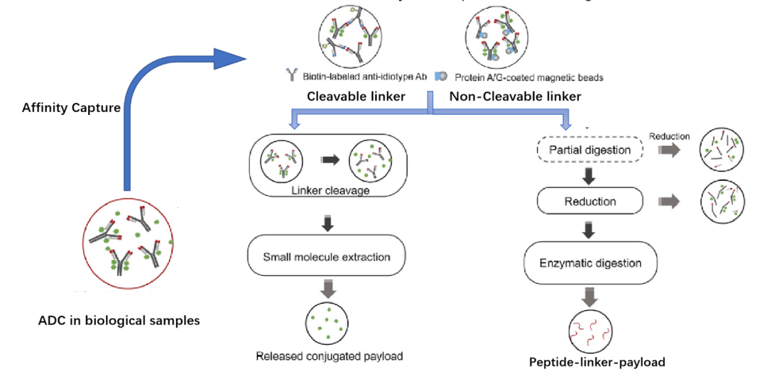 稳定性:包括样本采集、储存和处理过程中的稳定性。某些毒素(如含巯基化合物)需还原和衍生化处理;可裂解linker需控制pH或添加蛋白酶抑制剂以防止payload脱落[3]。