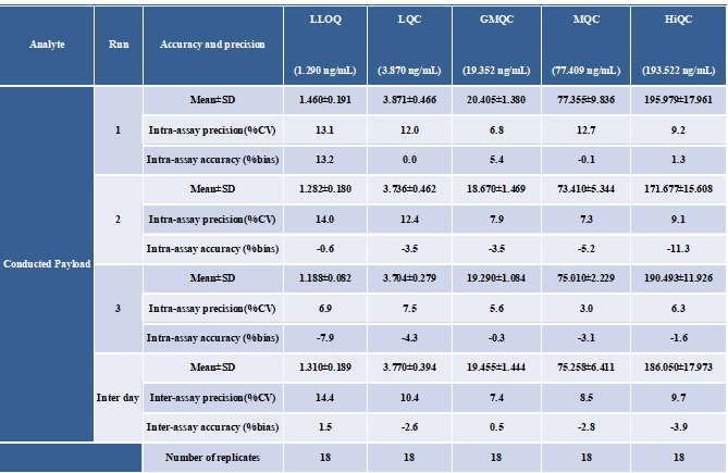 表2 血浆中偶联毒素小分子检测的准确度与精密度结果